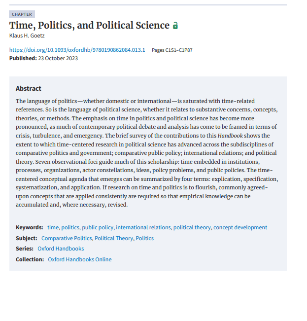 Newly published: The Oxford Handbook of Time and Politics, edited by Prof. Klaus H. Goetz. Purchase it using this link.
